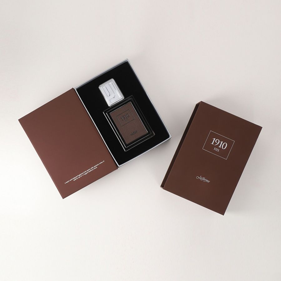 For Him: A warm and intense fragrance that opens with peppery notes of saffron, set on a rugged leathery base.